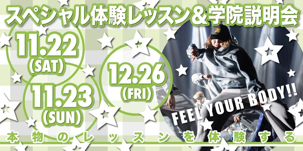 初心者大歓迎!参加費無料!!本学院のダンスや芸能のレッスンを体感できます!